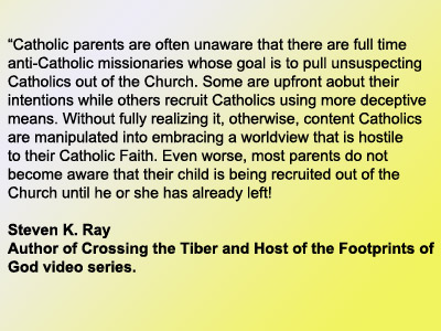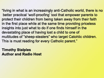 A practical guide for keeping your kids Catholic. Readable and comprehensive on how to deal with groups who wish to bring your child/grandchild/godchild out of the Catholic Church. Not exclusive to just parents but also godparents and those concerned about their family or friends. This book will identify steps for dealing with anti-Catholic ministries and provide resources for those being targeted by them.